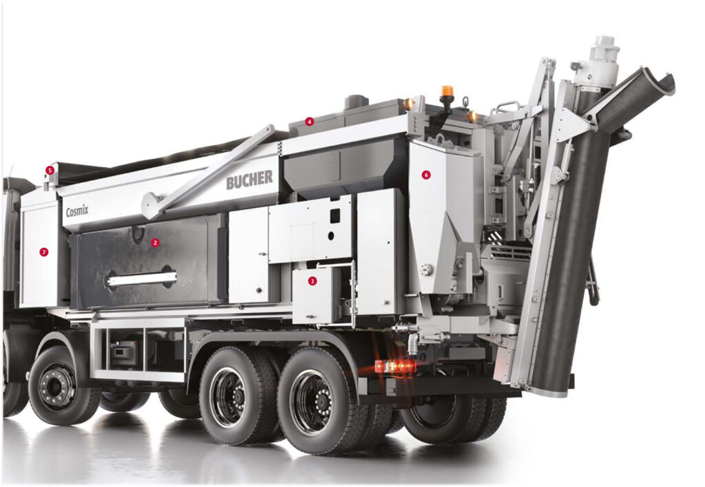 Ontwikkeld met zwitserse precisie presenteren wij de Cosmix van Bucher. Ongeacht het project of de toepassing, de ongeëvenaarde technologie van de Cosmix maakt deze mobiele betoncentrale zo universeel.